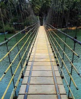 Just 10 km from Kadala Homestay, the Kemmannu Hanging Bridge offers a unique experience with its charming suspension walkway over the backwaters. Surrounded by lush greenery and calm waters, it’s a perfect spot for peaceful walks and scenic photography.